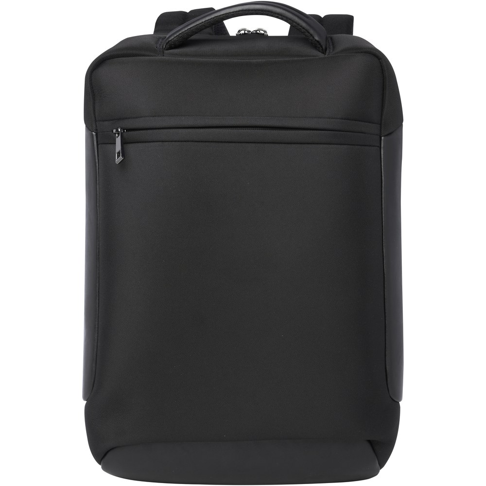 De slanke, compacte en stevige GRS-gecertificeerde Expedition Pro laptoprugzak is een perfecte metgezel voor professionals onderweg. Hij is gemaakt van waterafstotend 900D RPET, gecombineerd met premium PU-elementen en RPET-voering. De tas heeft een speciaal 15,6'' laptopcompartiment, een tablethoes, meerdere opbergvakken, een voorvak met ritssluiting en een verborgen vak direct onder de bagageband aan de achterkant. Gemaakt met gewatteerde en verstelbare schouderbanden, een geïntegreerd vak voor pasjes, een lus voor een zonnebril, een voorgevormde luchtgaas achterkant en een gewatteerde handgreep, voor maximaal draagcomfort en gemak. Inhoud: 12 liter. PVC-vrij.