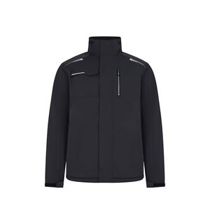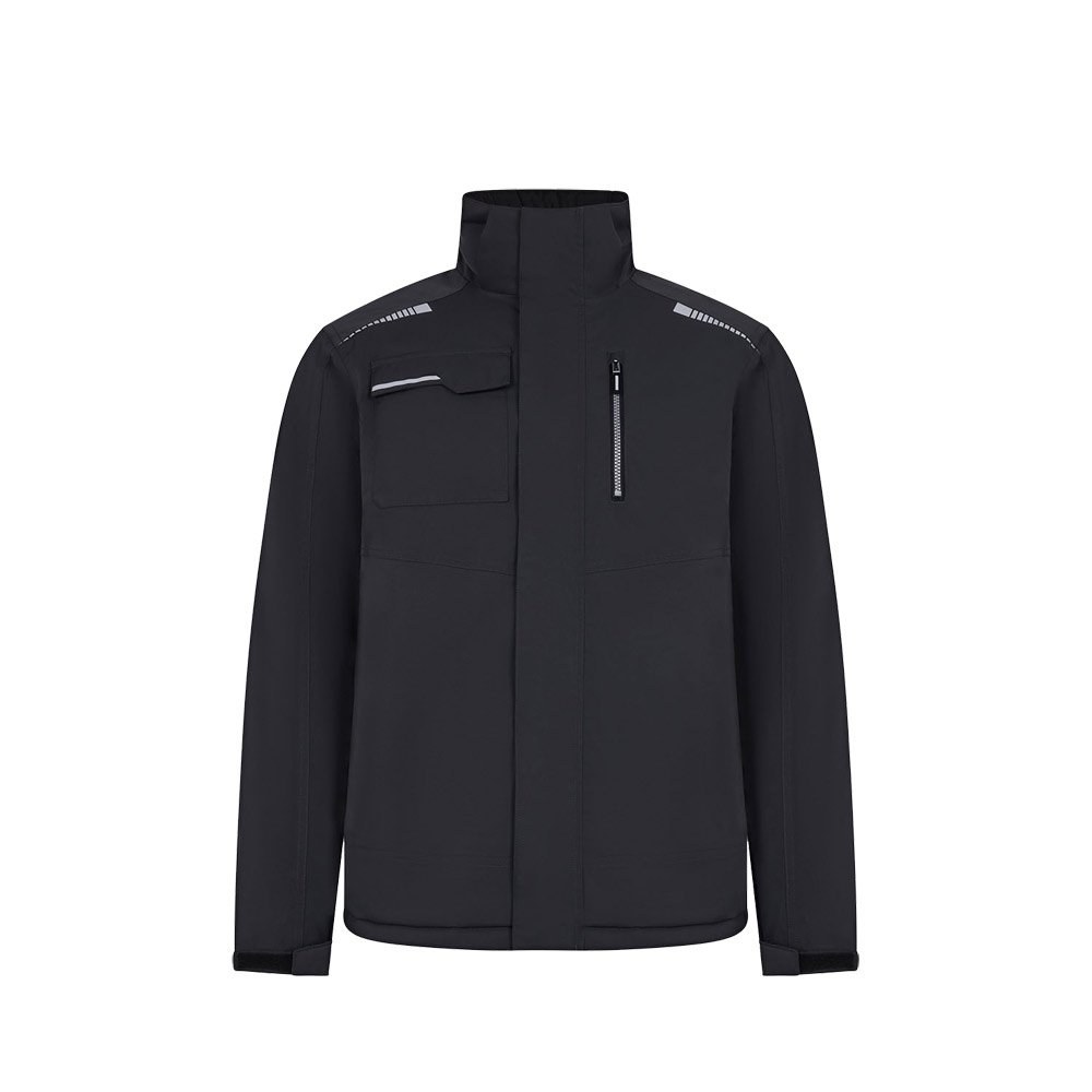 Gewatteerde jas (180 g/m²), gemaakt van gerecycled polyester (50%) en polyester (50%). Voorzien van waterafstotende stretchstof, hitteverzegelde naden, reflecterende details en een ritssluiting aan de voorzijde. De jas heeft verborgen knopen en vijf zakken (twee zijzakken, een linkerborstzak, een rechterborstzak en een binnenzak). Maten: S, M, L, XL, 2XL, 3XL